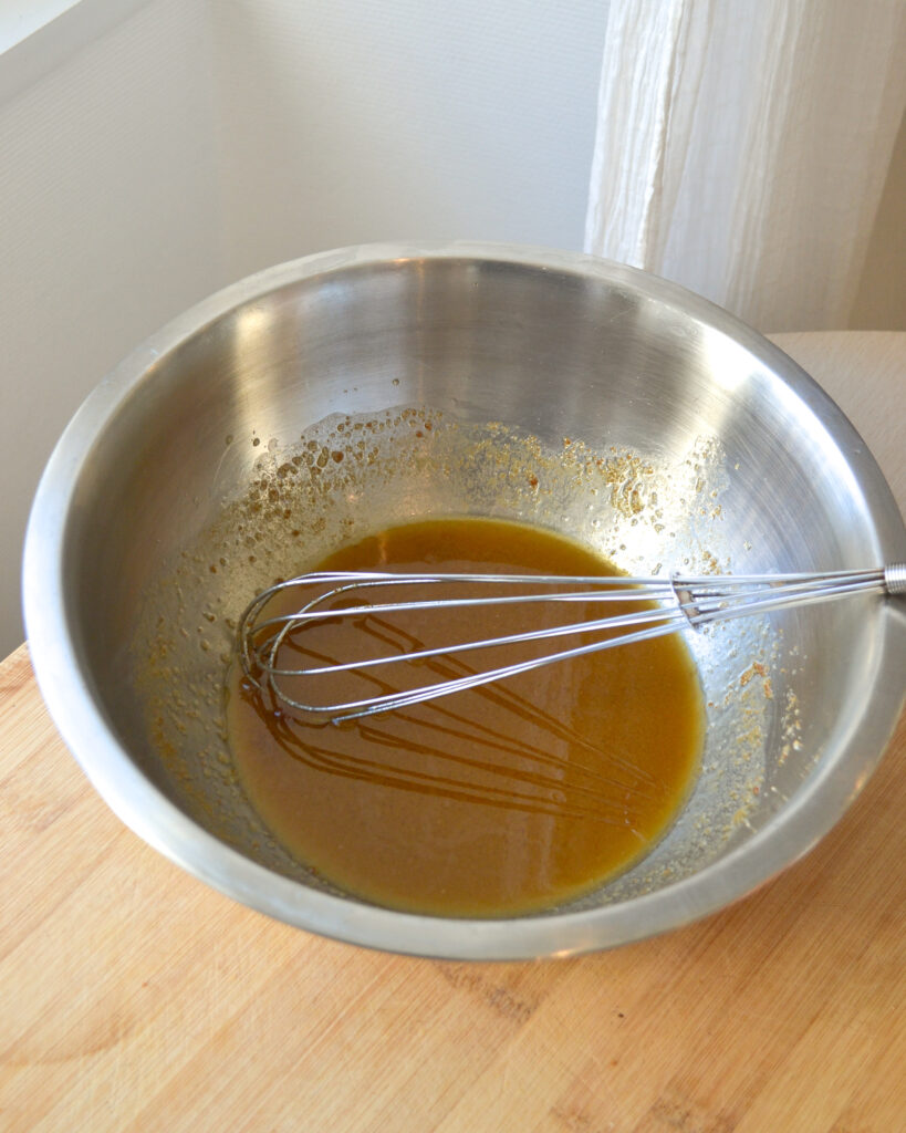 - Mélange le tout avec une cuillère à soupe jusqu’à ce qu’il n’y ai plus de morceaux de farine.