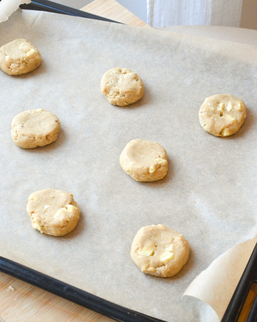 - Une fois que les cookies ont reposé, sors la pâte du frigo et préchauffe le four à 180° en chaleur tournante.