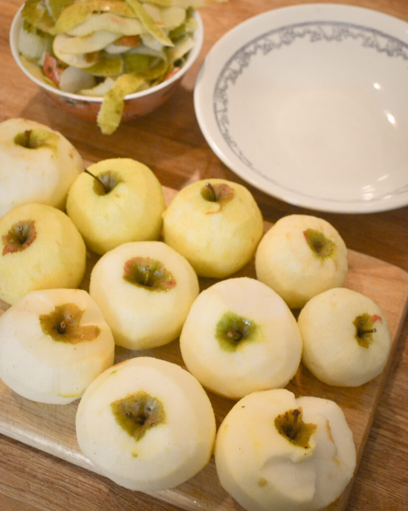Pommes : je recommande d’utiliser entre 8 et 12 pommes selon ton stock, afin d’avoir une couche de pommes généreuse, mais tu peux totalement adapter la quantité de pommes selon ton goût.