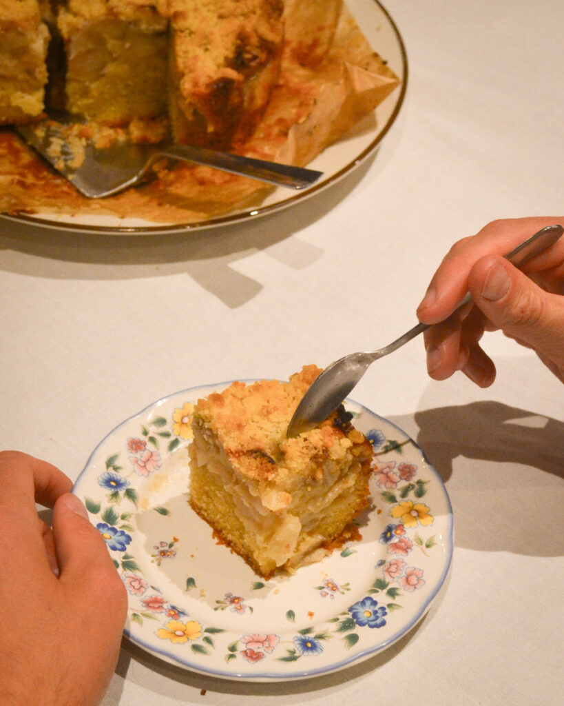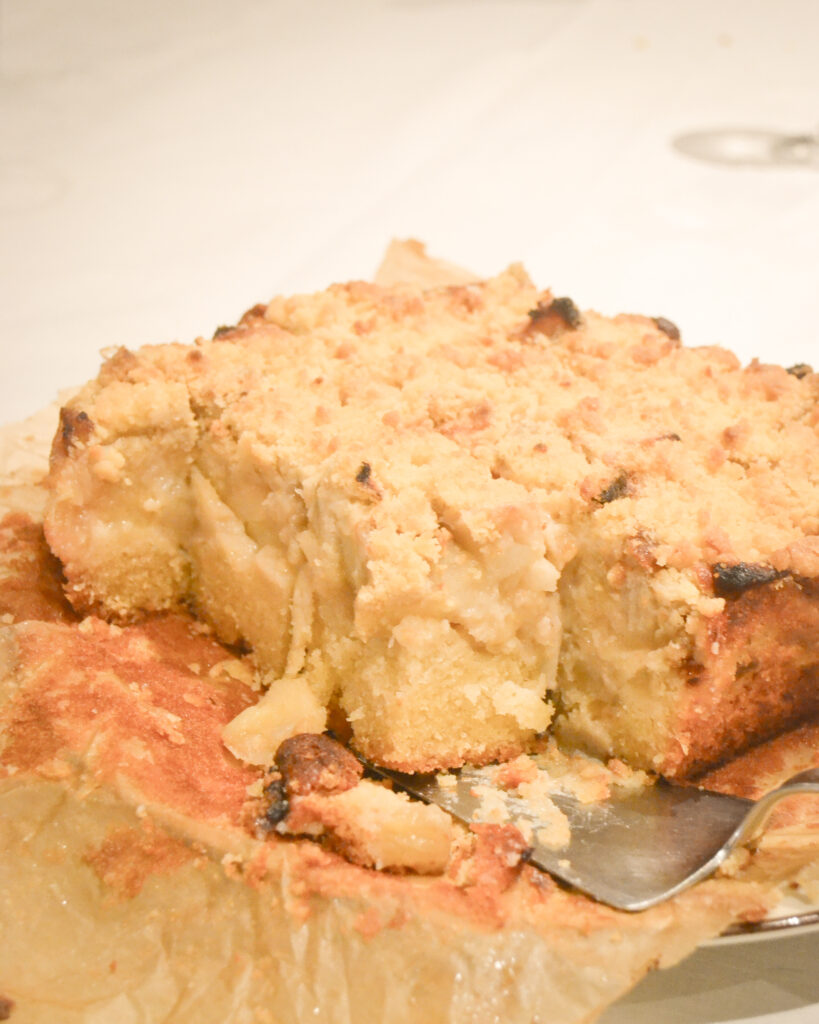 Un gâteau moelleux recouvert de pommes cuites et d’un crumble généreux, pour un dessert ultra-gourmand et facile à réaliser.