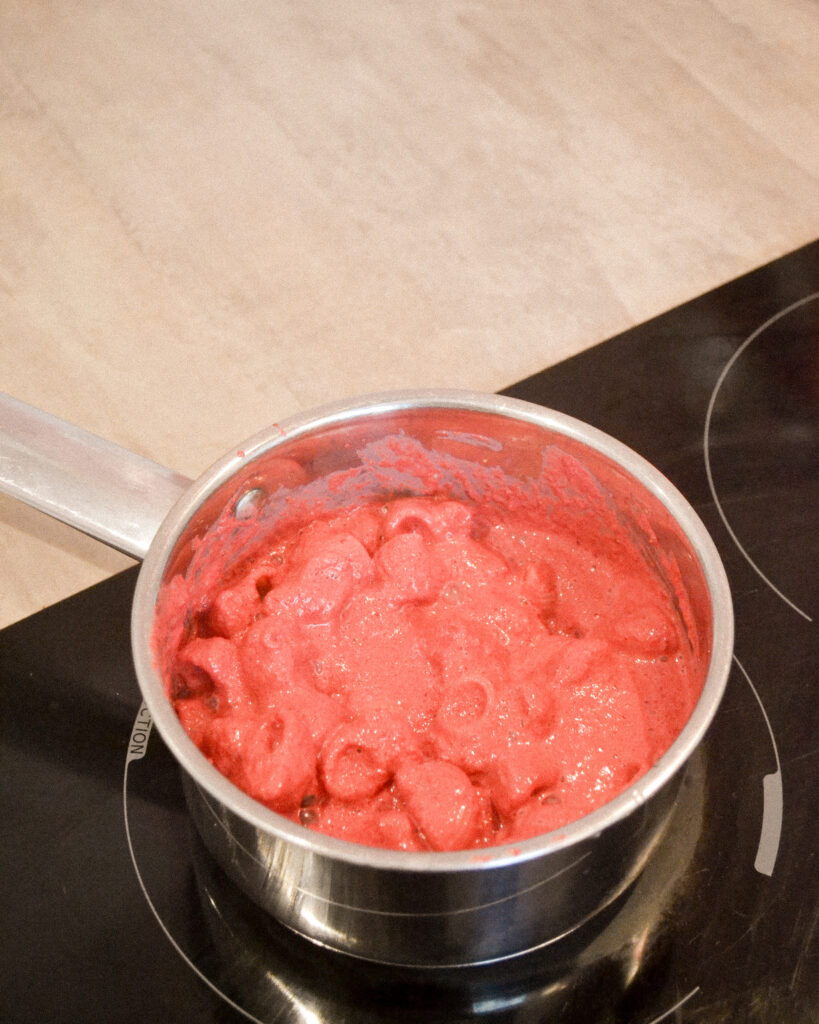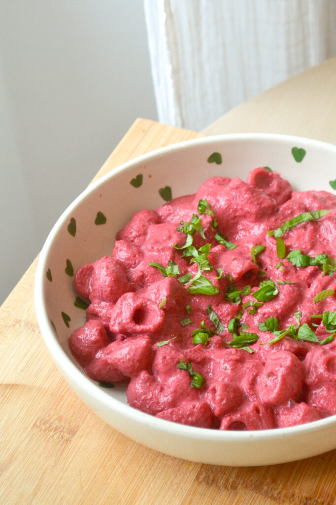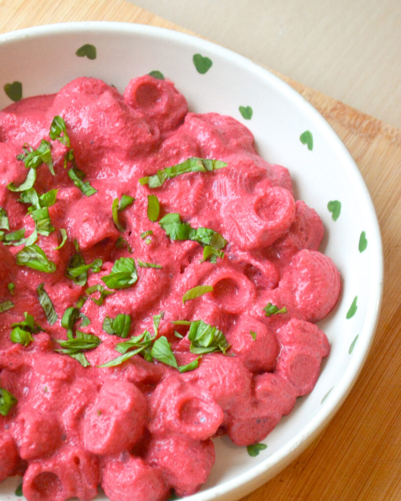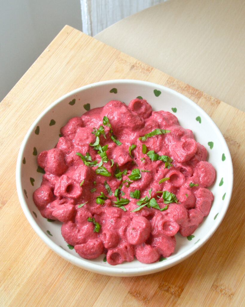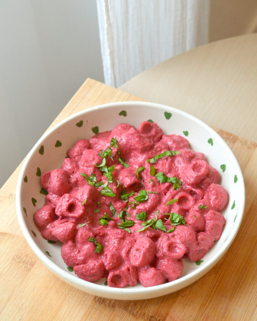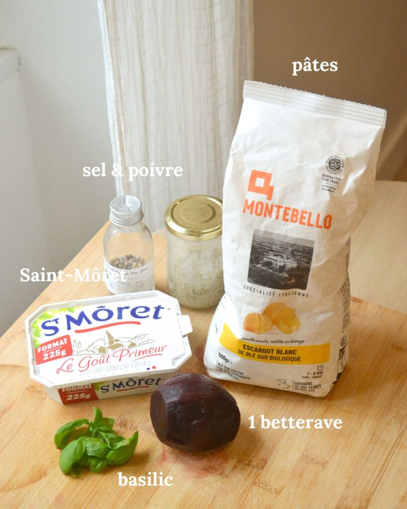 Pâtes simplissimes à la betterave et au Saint-Moret