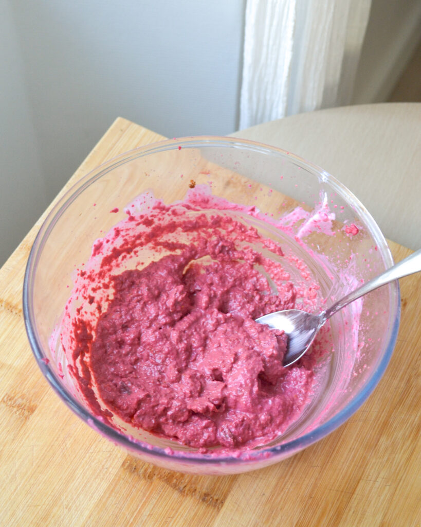 - Mixe jusqu’à obtenir une texture onctueuse et homogène (plus de morceaux de betterave).